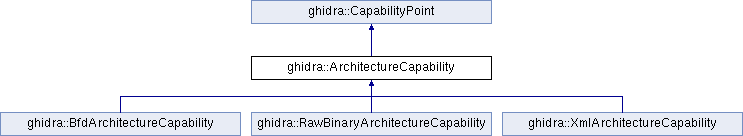 Implemented in ghidra::BfdArchitectureCapability, ghidra::RawBinaryArchitectureCapability, and ghidra::XmlArchitectureCapability.